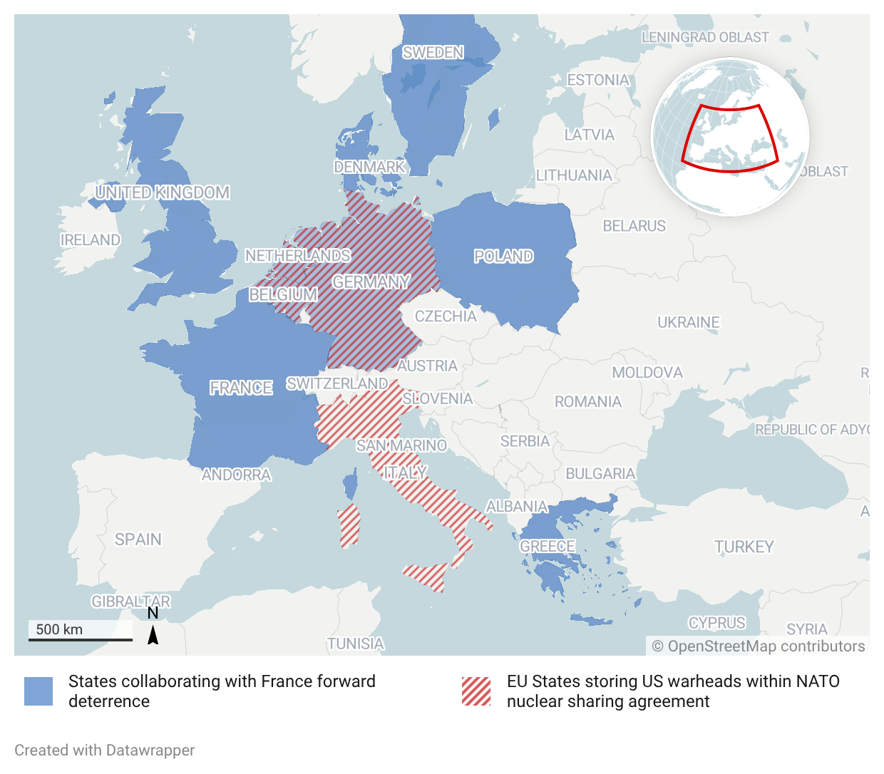 The French policy of forward deterrence (“dissuasion avancée”) foresees a structured security relationship with 8 other European countries: Germany, Poland, the Netherlands, Belgium, Greece, Sweden, Denmark, and the UK. France plans to conduct joint exercises and temporarily station French nuclear-armed aircraft strategically in the territory of the cooperating European states. This collaboration will be complementary to NATO’s nuclear sharing framework, which established the storage of American warheads in several EU Member States (MSs) – Belgium, Germany, Italy, and the Netherlands – while the United States (US) maintain the exclusive mandate to deploy the weapons.